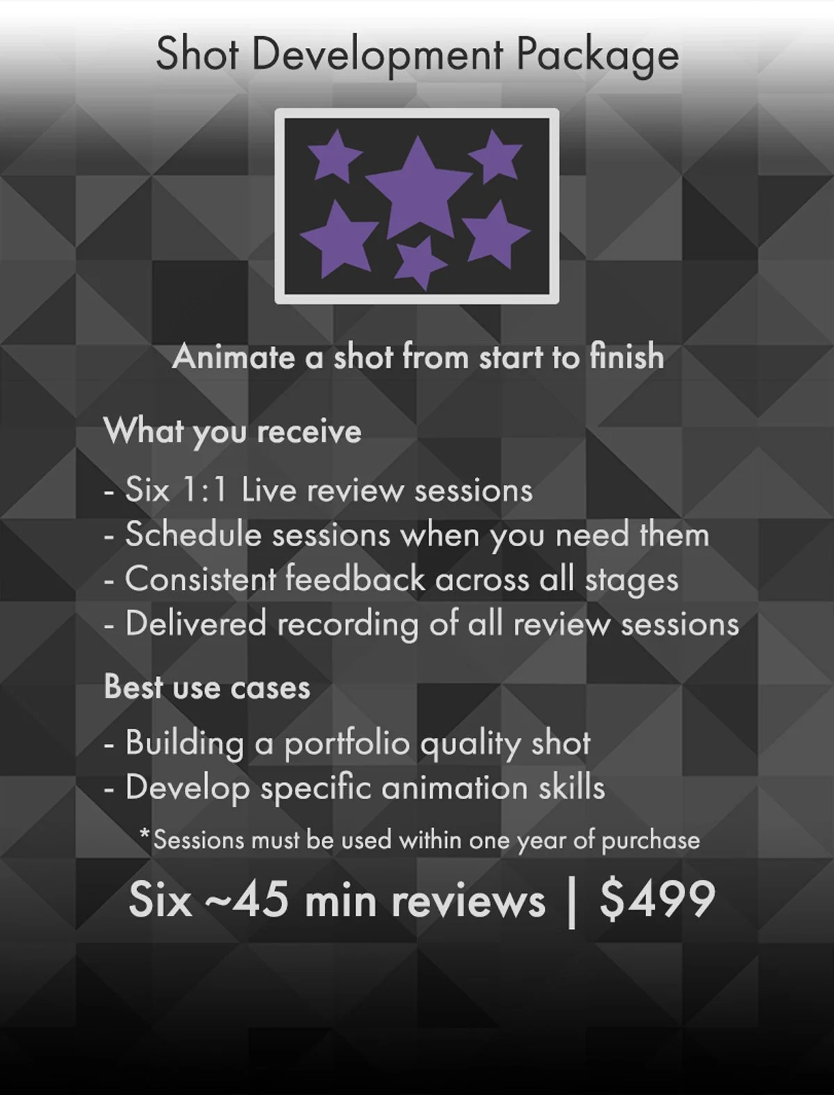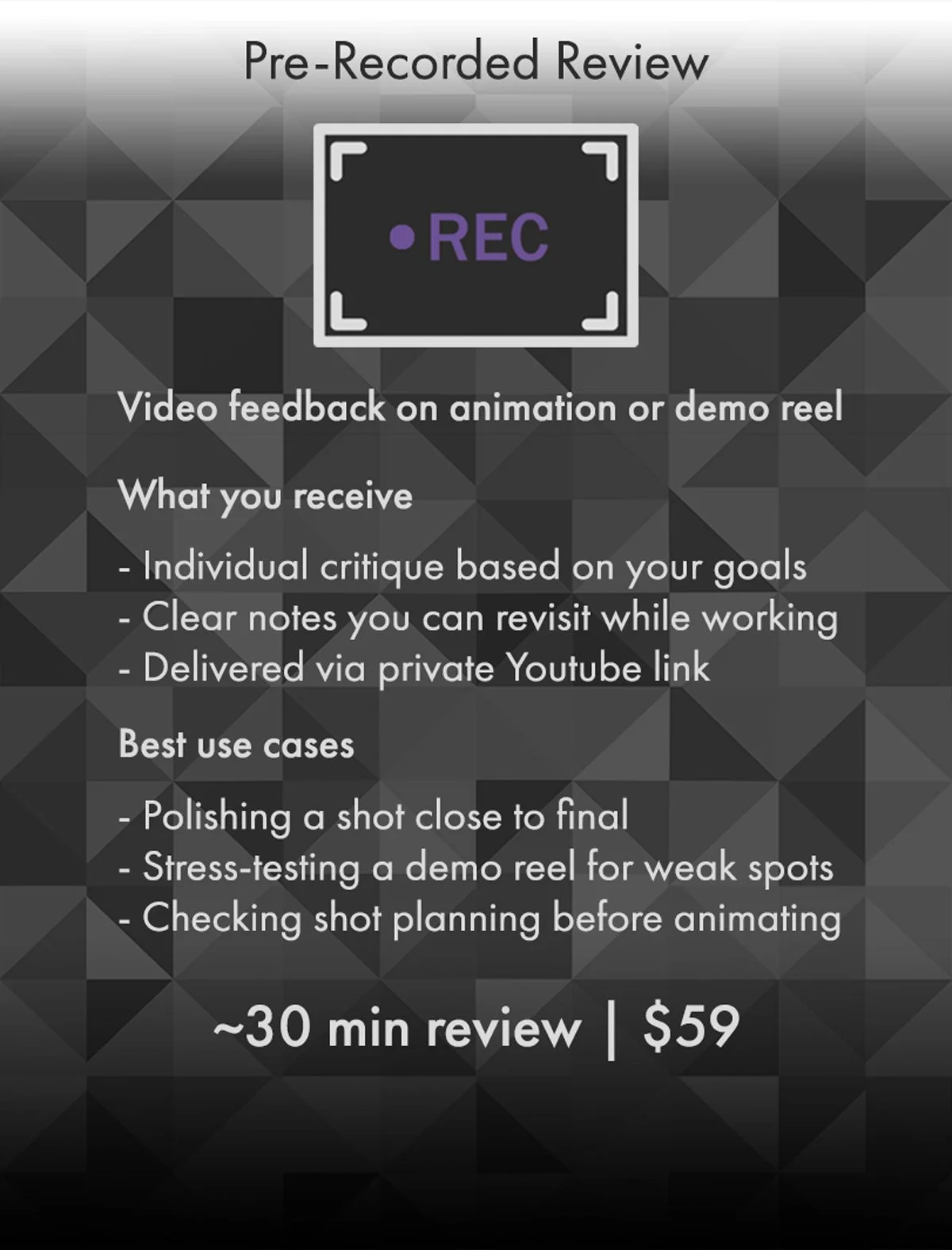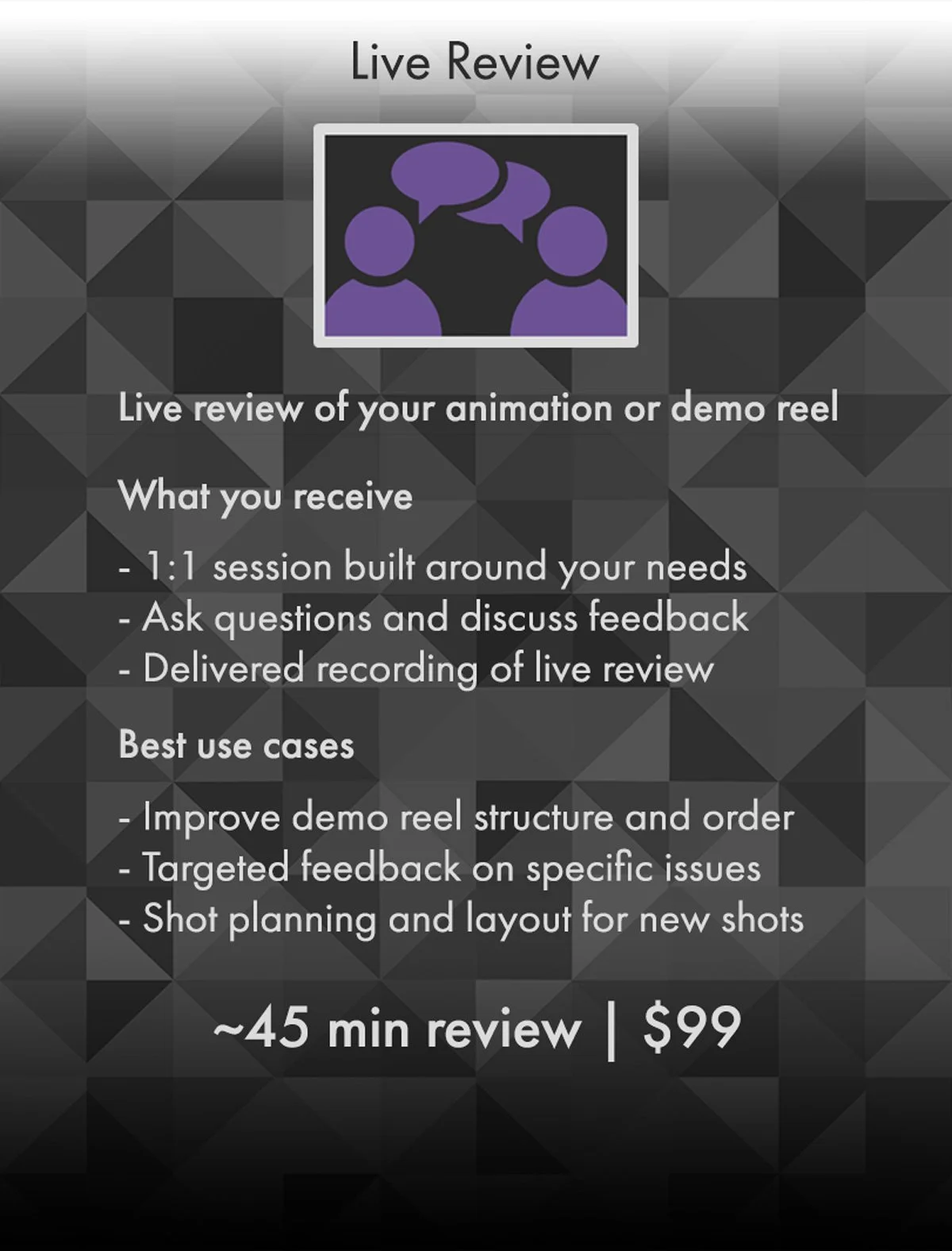 These sessions are designed for animation students, junior animators, and professionals who want clear notes on their work.